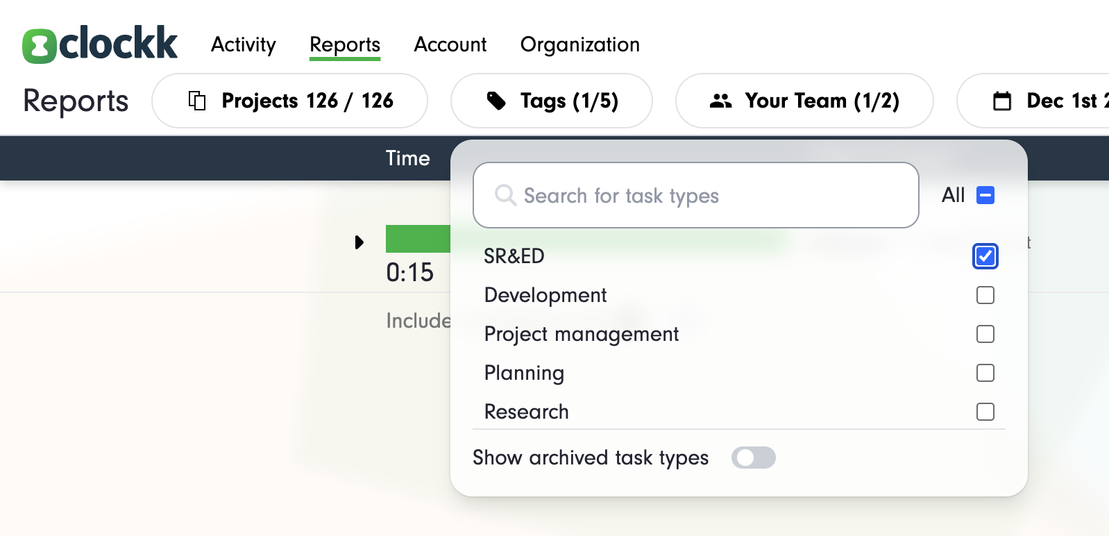 Clockk already shows you what you worked on and for how long. Now you can capture why. Tags — also known as task types — let you add lightweight context to any project or block on your timeline. Whether you want to distinguish design from development, research from admin, or track tax-credit-eligible work (like SR&ED), tags give you the control to see your work with new clarity.