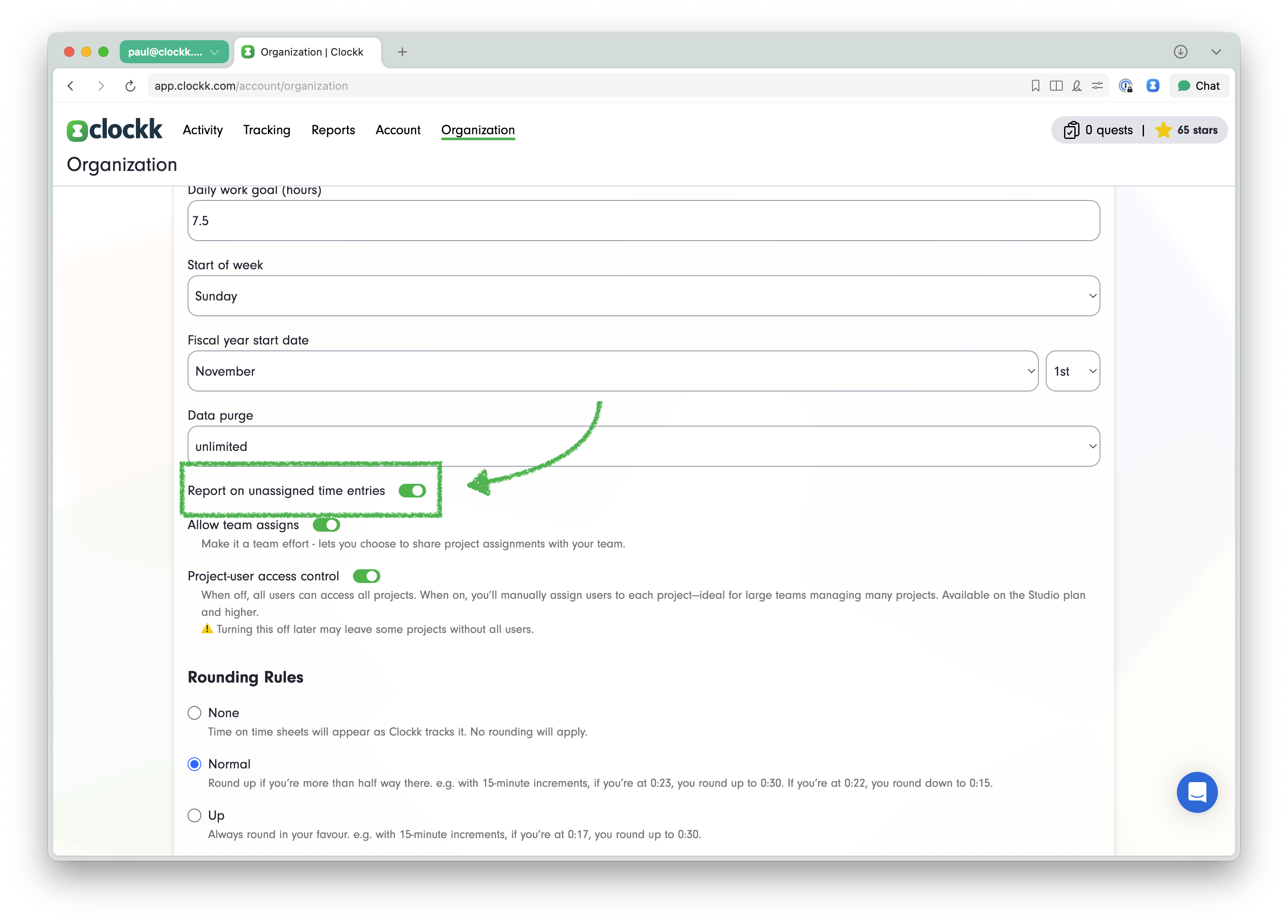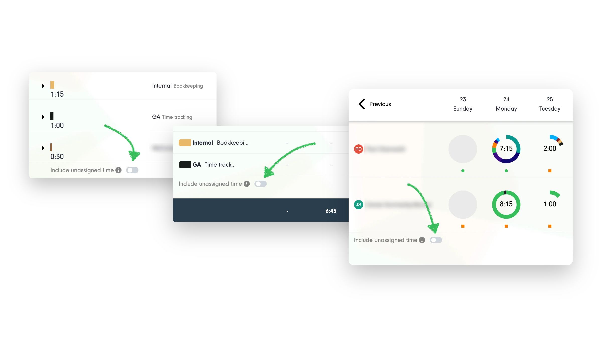 You’ll see both in your daily email, and you can include unassigned time in your Reports whenever you want the full view.